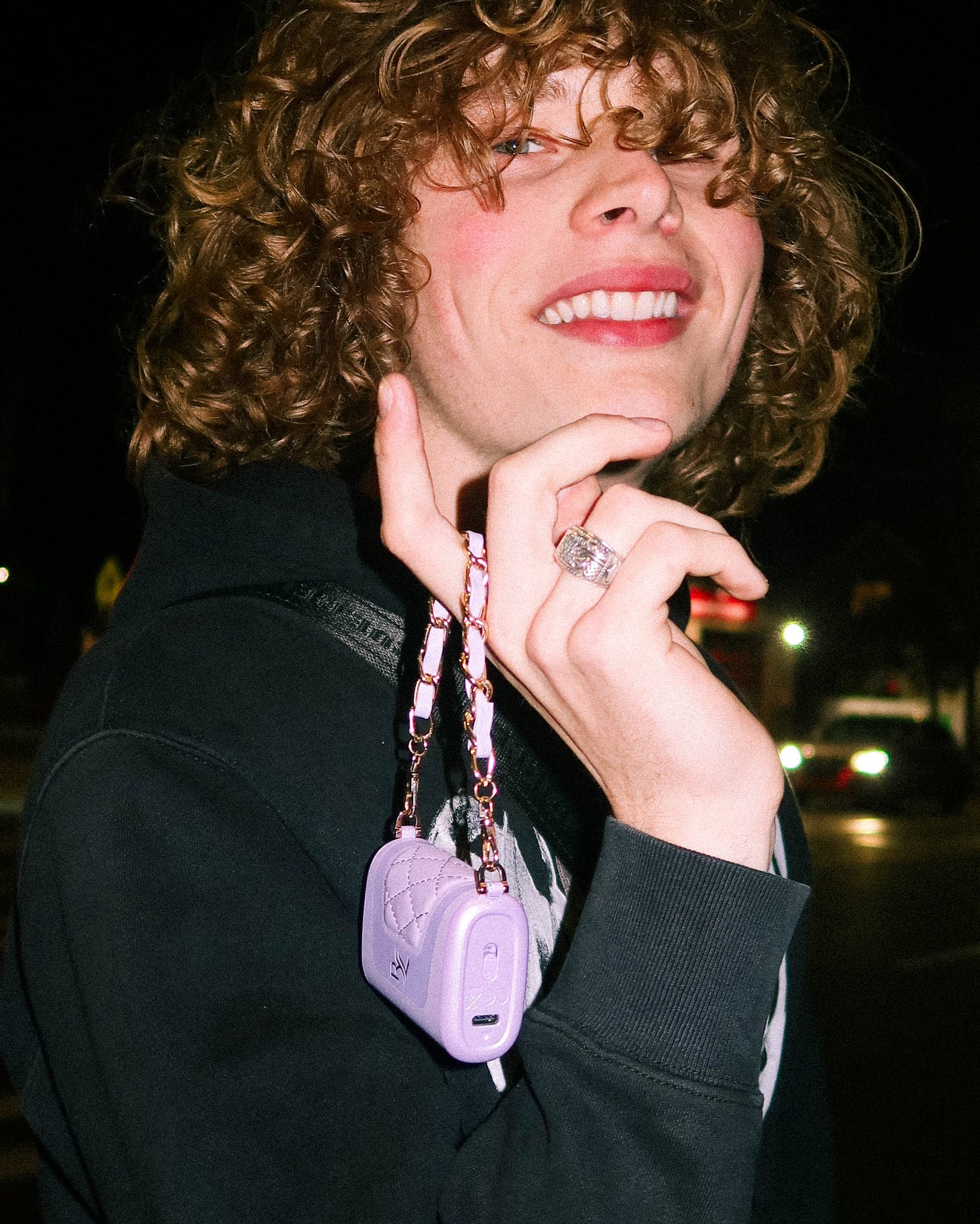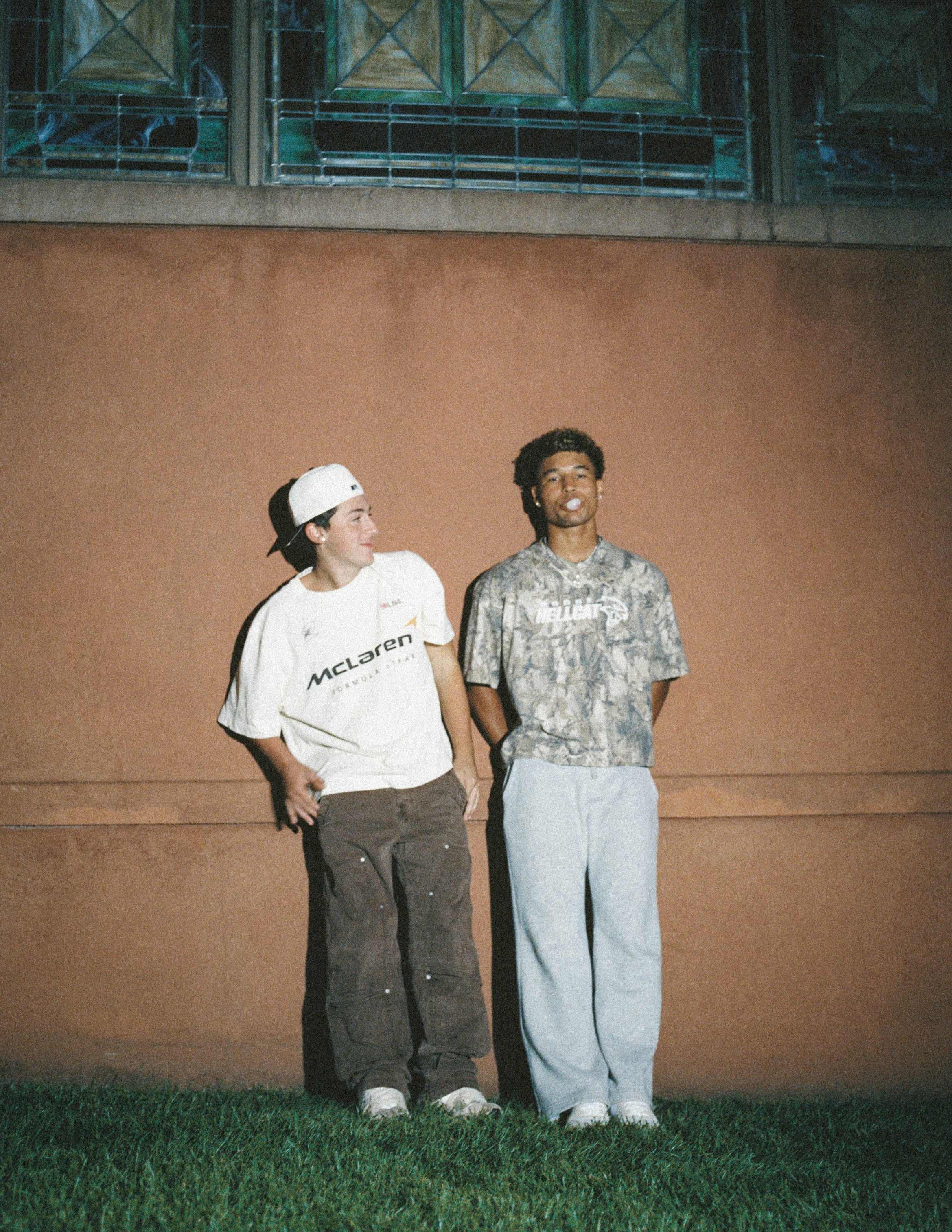 The blinking sign to cross the street never comes, but Jack leads us across six lanes toward the only open gas station in town. Before we make it there, he’s affectionately catcalled by a young man passing by on the sidewalk. He’s a total normie, wearing a Rangers hockey jersey on his way back from the match in the city. He compliments Jack’s style and says he looks like Nettspend.